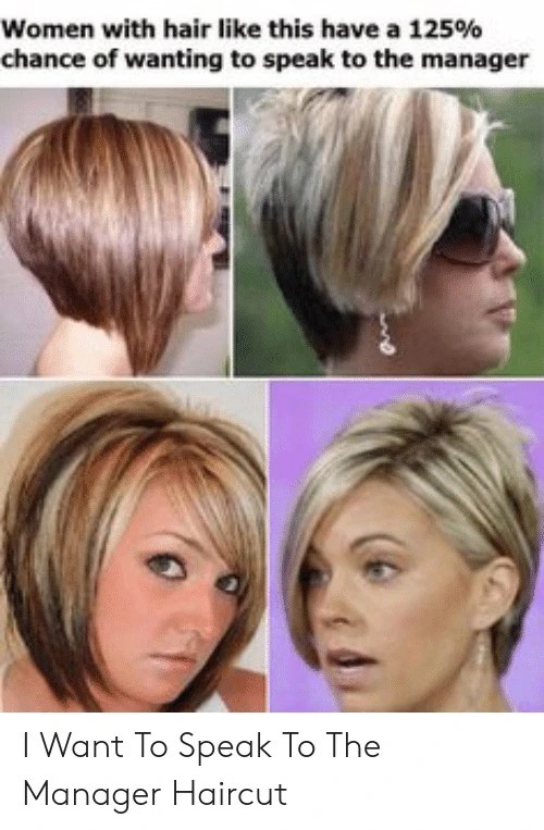 Phenomenal Hairstyle Karen Gif.Karen haircut features an asymmetric style shorter at the . A karen haircut is shorter in the back than it is in the front, it's often blonde in color and it often resembles in inverted bob. The memes always feature a woman wearing the same short, angled, and layered haircut. Additional “karen” haircut characteristics are having the hair in your back be shorter than the hair in your front and having harsh blonde highlights. It is usually an outdated hairstyle .